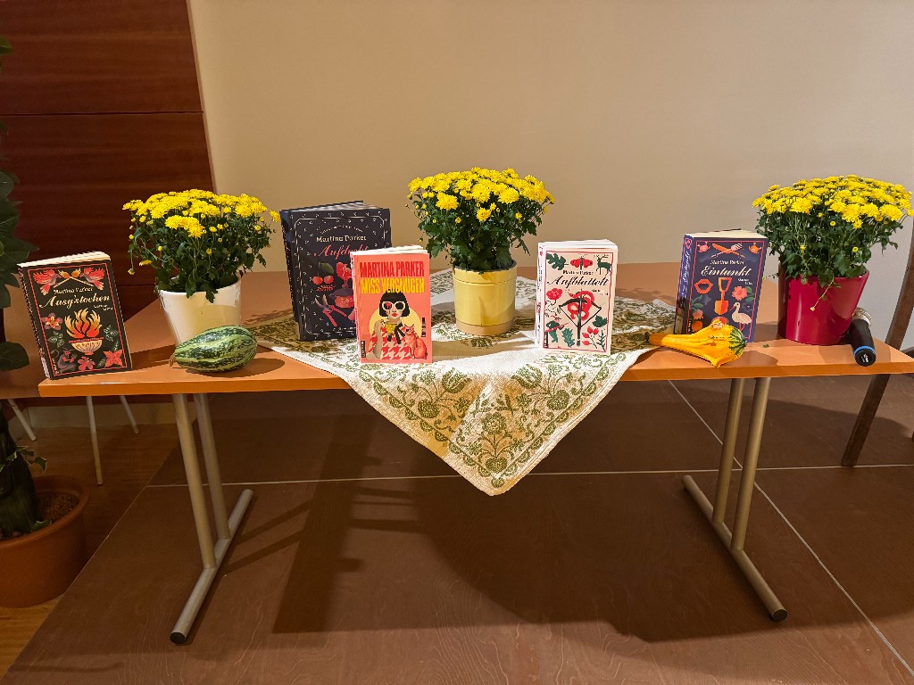 Gartenkrimis aufgereiht Martina Parker Über 80 BesucherInnen Martina Parker Martina Parker Foto von Peter Gerber-Plech Foto von Peter Gerber-Plech Martina Parker mit ihrem neuest Roman Martina Parker Martina Parker mit zwei Mitgliedern des Bücherei Teams Buchverlosung mit Sonja Wirgler von KLAR Lanzendorf Glückliche Gewinnerin IGlücklicher Gewinner Glückliche Gewinnerin IFrau Strini von der Buchhandlung am Hauptplatz, Schwechat Anstellen zum Signieren der gekauften Bücher Martina Parker signiert die Bücher Nette Damenrunde beim anschließenden gemütlichen Beisammensein Nette Gäste aus Wien Dr.Christoph Lampert, Peter Gerber-Plech Renate Kaufmann und Herbert Tkacsik übernahmen die Bewirtung Nette Damenrunde